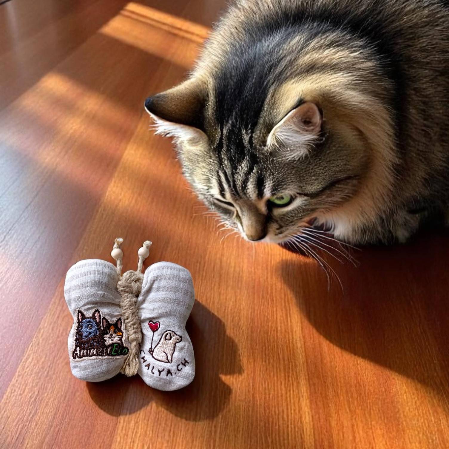 Le Papillon ist aus einer wunderbaren Zusammenarbeit zwischen den Marken Chalya und AninestEco entstanden und ist ein weiches, leichtes und engagiertes Spielzeug, das mit Herz für das Wohlbefinden Ihrer Begleiter entwickelt wurde.