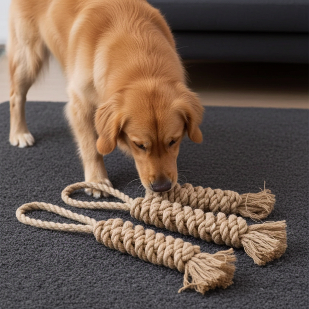 Der dezente Duft von Hanf lockt Hunde instinktiv an, während der Ziehgriff und die Rüschen am anderen Ende ihren Spieltrieb anregen und für stundenlangen Spielspaß sorgen.