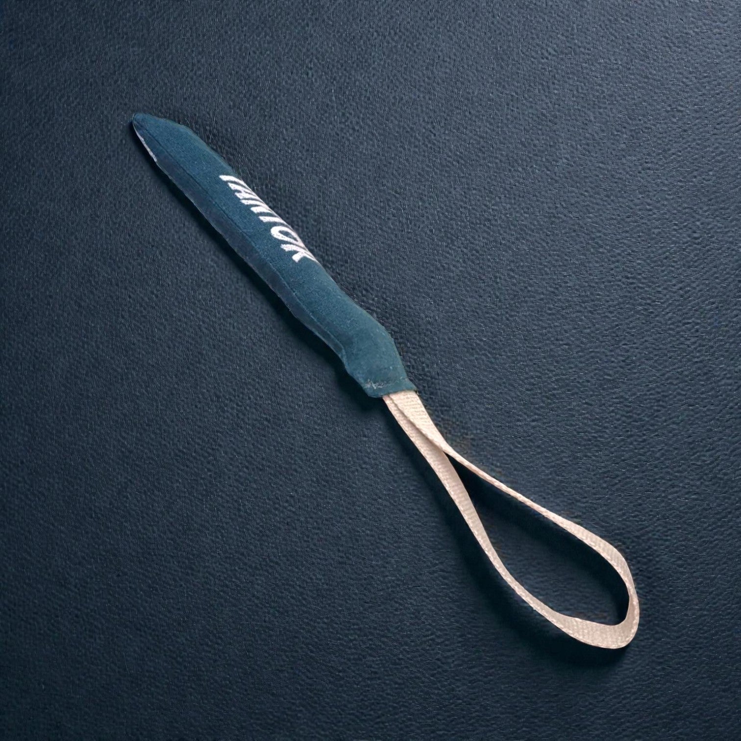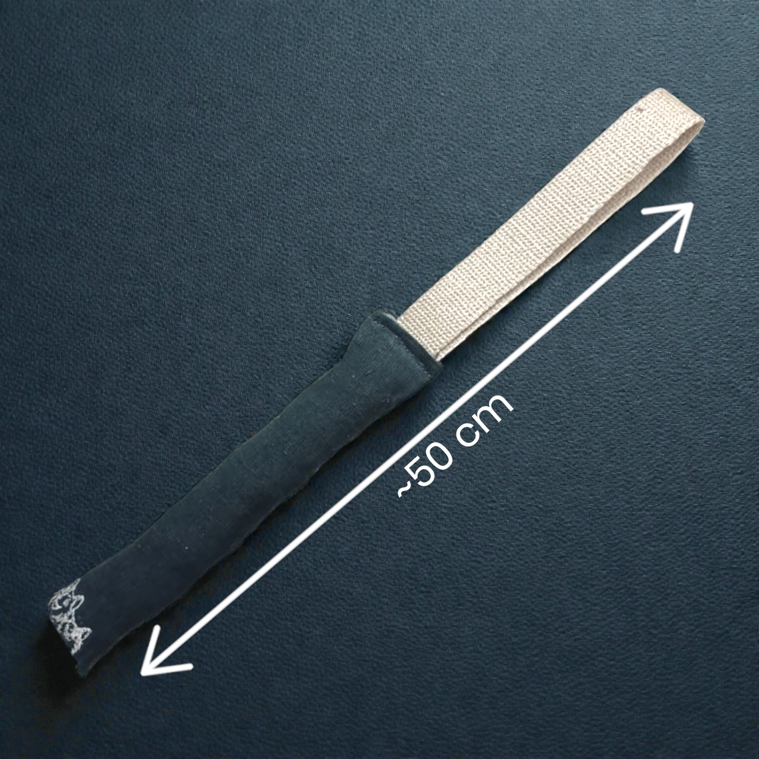 Sa forme allongée et sa sangle intégrée offrent une excellente prise en main pour les jeux de traction, de lancer et les moments de complicité.