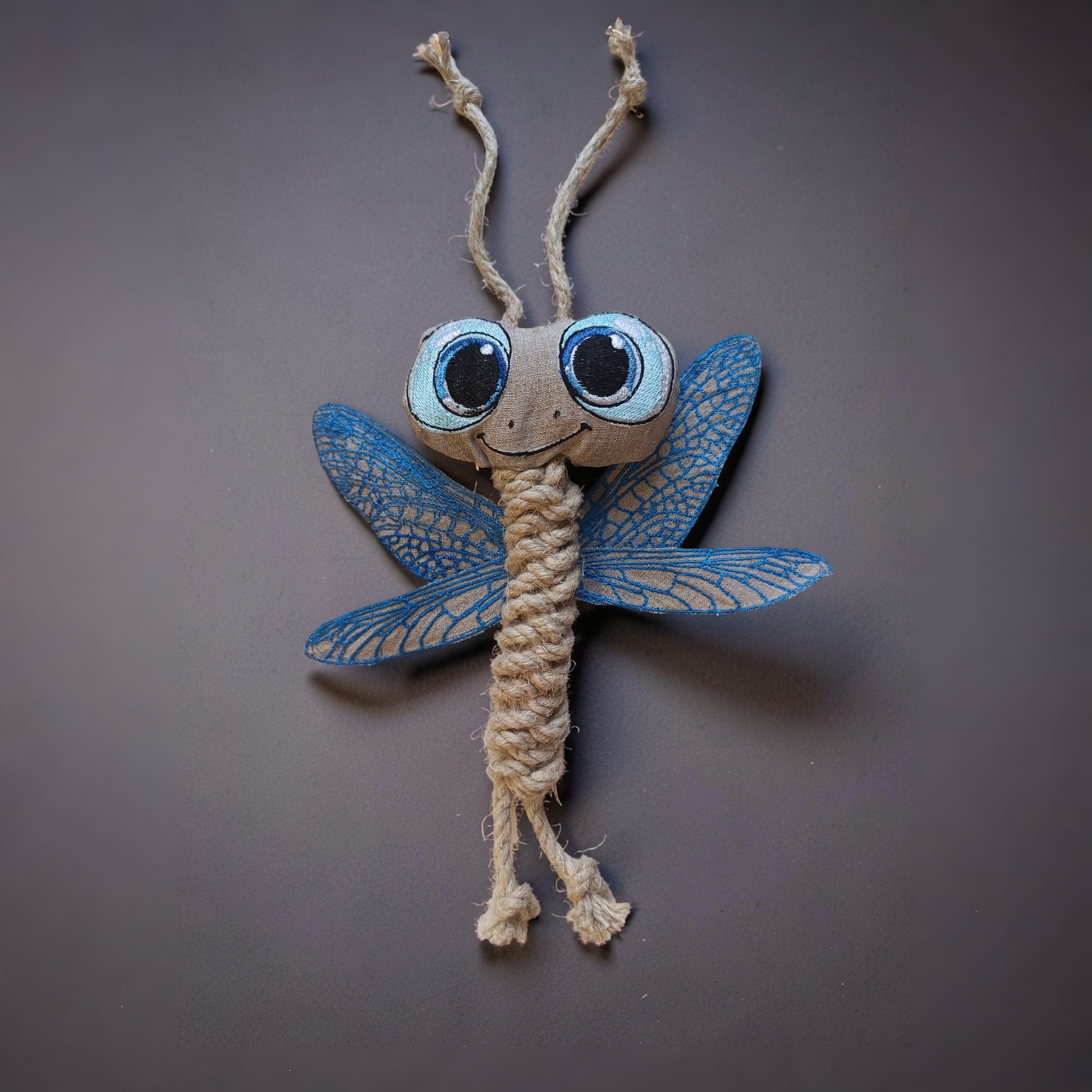 Avec ses ailes texturées et son corps en corde naturelle,